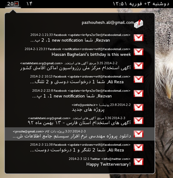 افزونهی Gmail برای نمایش ایمیلهای جدید